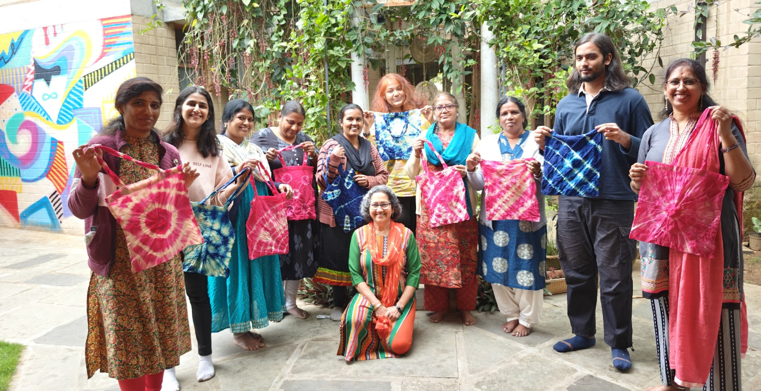 Baithak at the Snehadhara campus brought the group together around the timeless craft of tie and dye. From learning the roots of the art form to feeling the fabric, tying the folds, dipping it into colour, and finally unravelling each piece — everyone experienced the process with their own hands and rhythms.